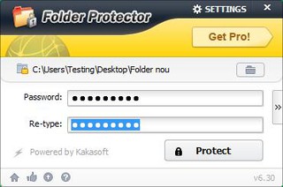Folder Protector thì có cách thức sử dụng đơn giản hơn, bạn chỉ việc cài đặt nó vào Windows, sau đó khởi động ứng dụng lên, chọn thư mụcmuốn khóa, nhập mật khẩu 2 lần và nhấn nút Protect là xong.