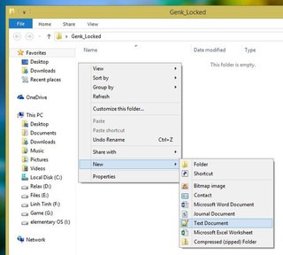Sau khi tạo xong thư mục, hãy mở nó ra. Nhấn phải chuột và chọn New > Text Document.